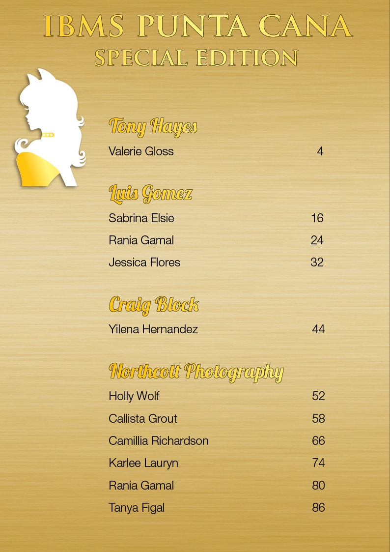 Models: Valerie Gloss, Sabrina Elsie, Rania Gamal, Jessica Flores, Yilena Hernandez, Holly Wolf, Callista Grout, Camillia Richardson, Karlee Lauryn, Rania Gamal, Tanya Figal,